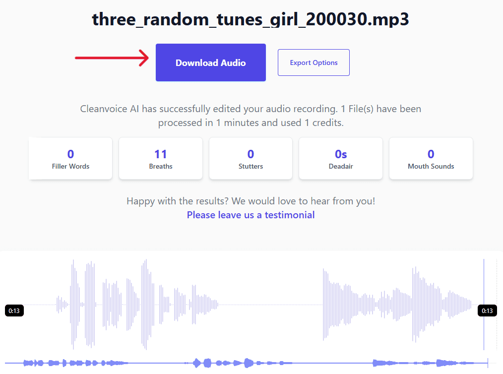 Once you're satisfied with the edits, simply click Download Audio to save your cleaned audio file.