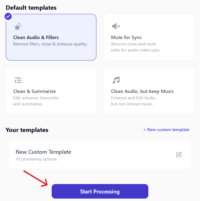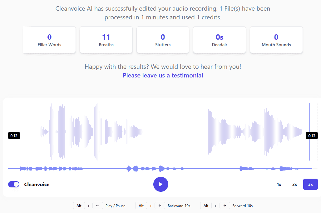 Tip: Cleanvoice supports batch uploads, meaning you can edit multiple files at once using the same settings, which is great for consistency and time-saving.