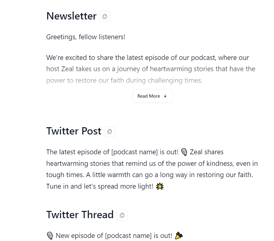 You can use a podcast question generator tool to create your section titles and topics. It adds relevant keywords and improves your podcast SEO. You can even use podcast script templates for a headstart.