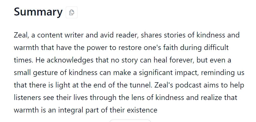 You don’t have to listen to your podcast to create pages-long transcripts, or read the same transcripts to summarize within 150-200 words.