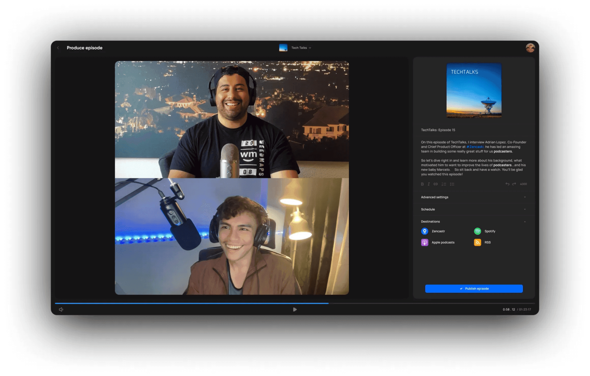 Video podcast software that is packed with just the right features you need lets you edit faster and distribute your content without the hassle. This means less time fiddling with complex software and more time planning, recording, and engaging with your audience.